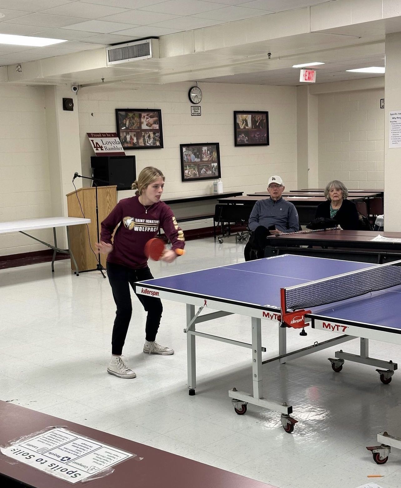 Members of the Saint Ignatius Ping Pong Club focus on building community and friendly competition. We welcome players of all skill levels. If you are interested, we host drop-in meetings during Activity Period in the 2nd floor gym. In the winter, we take it up a notch by forming a team that competes against other schools.
