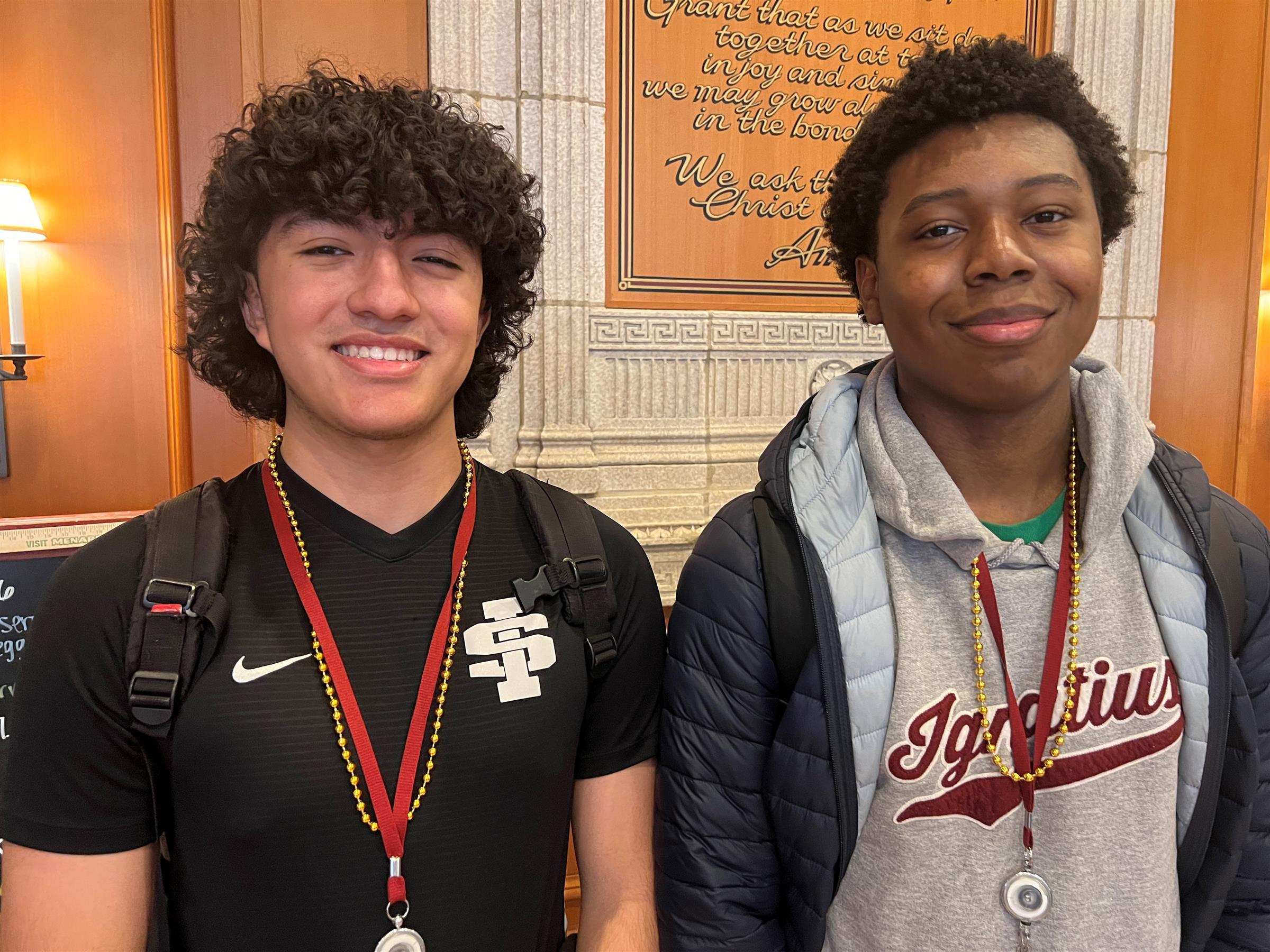 Modesty, respect, and reverence should guide student appearance on Church Attire Days. Boys should wear dress slacks, a dress shirt and tie for the entire day. Dress shirts should be tucked in at all times. Sport coats or sweaters are optional but appropriate. Girls may wear modest skirts or dresses that must be at least fingertip length. Relaxed-fitting dress slacks are also appropriate. Blouses and other types of tops should have sleeves or be worn with a relaxed fitting cardigan or blazer. Necklines must be suitable for Church. Any violation of dress code on a Church Attire Day will result in a double JUG. The Saint Ignatius Administration reserves the right to define what styles and fits are appropriate for a Church setting.